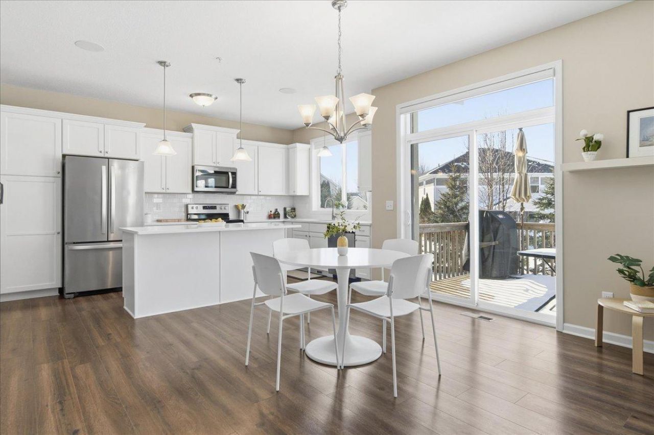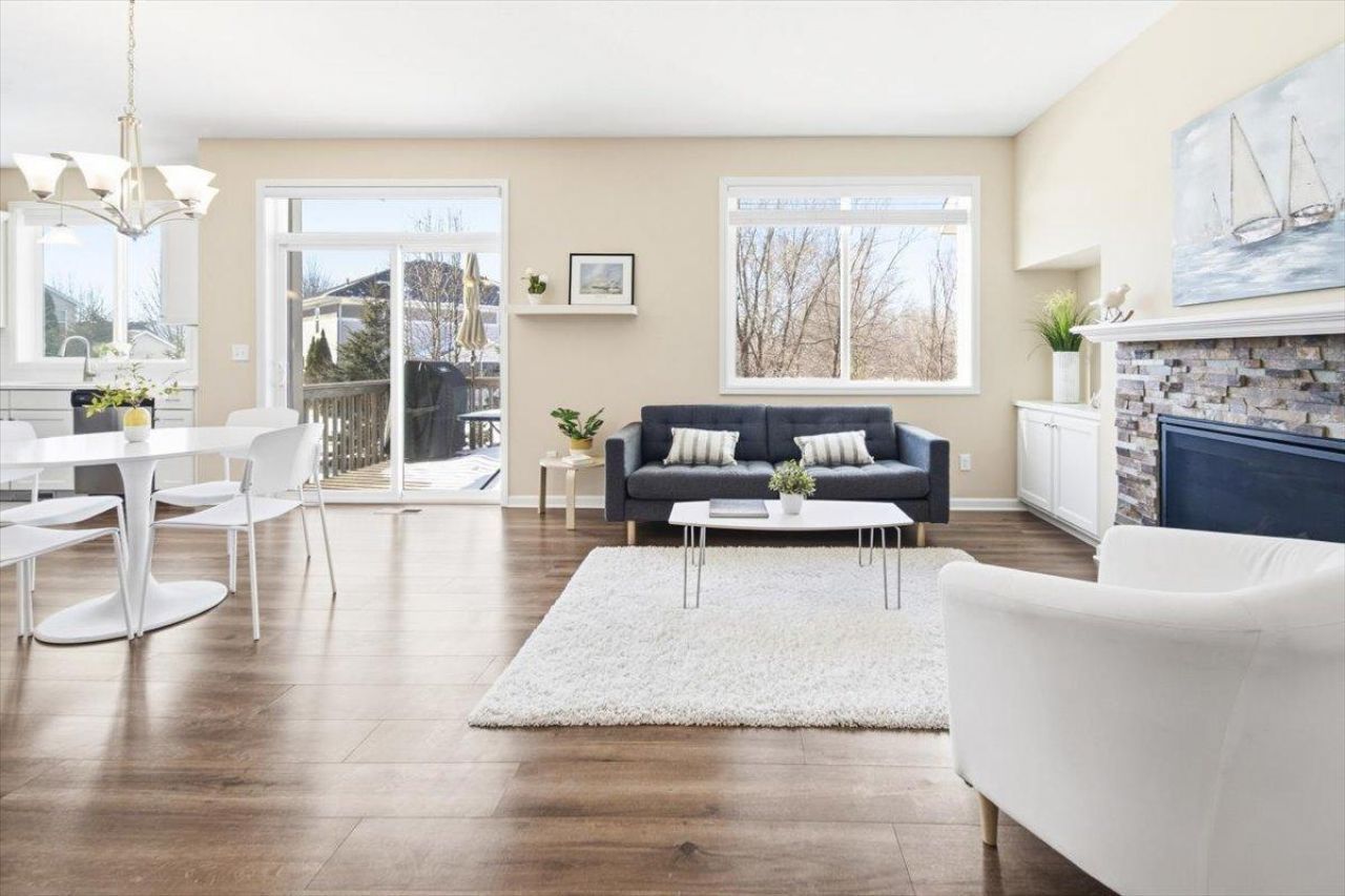 Welcome to this move-in ready, two-story townhouse in Woodbury, offering serene panoramic views of Turnberry Park and effortless low-maintenance living. Built in 2019 and gently lived in, this home feels like new with a modern open-concept design, engineered hardwood floors, and abundant natural light throughout.The main level features a bright living room with a gas fireplace, a stunning kitchen with quartz countertops, stainless steel appliances, and a large center island?perfect for everyday living and entertaining. Step out onto the deck to enjoy peaceful green space views with no backyard neighbors. A convenient main-level half bath completes the space.Upstairs, you'll find three bedrooms, including a private primary suite with ensuite bath, an additional full bathroom, and upper-level laundry. The finished lower level offers a spacious family room, a fourth bedroom, and a ¾ bath?ideal for guests or flexible living.A strong HOA provides snow removal and lawn care, making this home truly turn-key. A rare opportunity to enjoy low-maintenance living with park views in a prime Woodbury location.