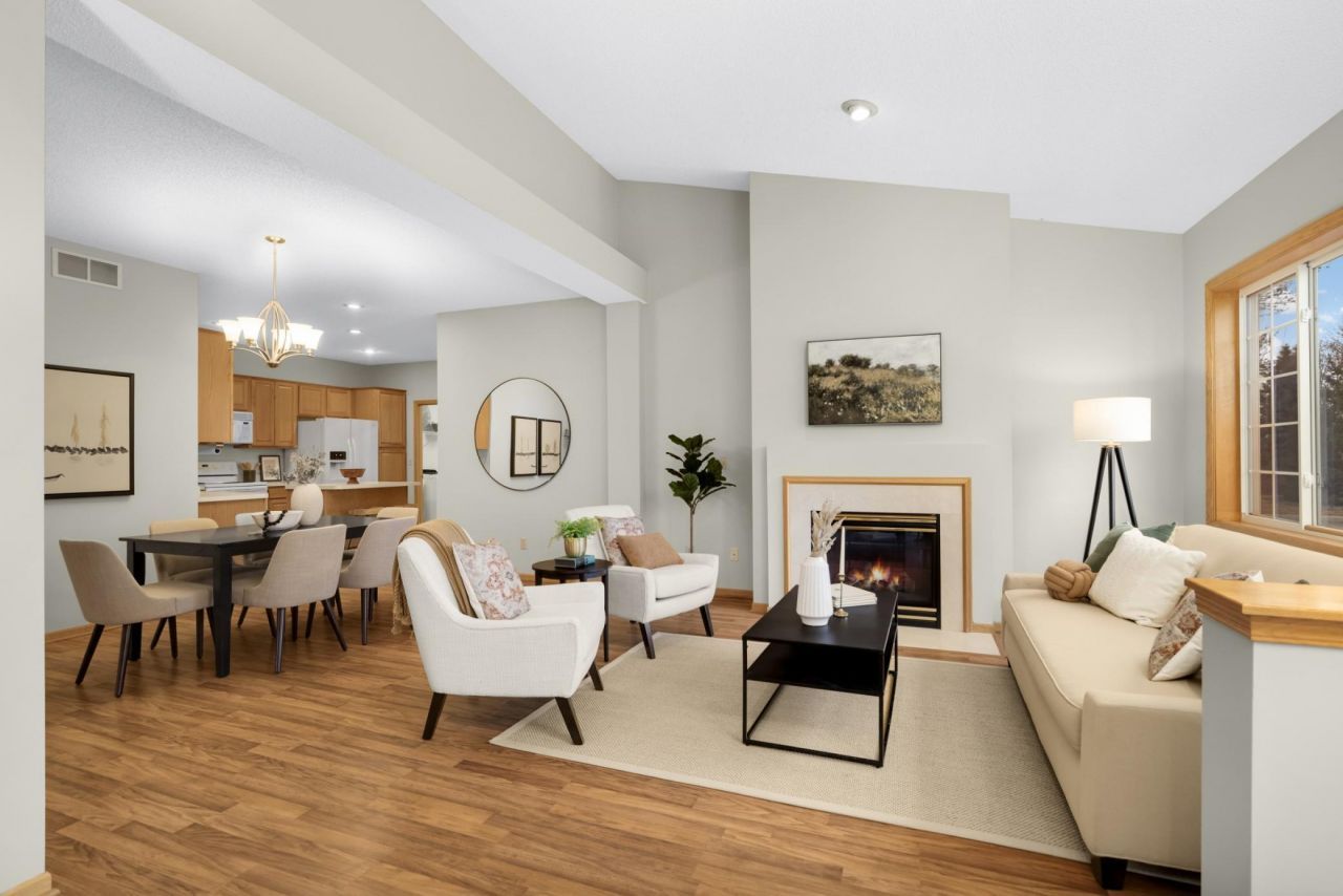 Welcome home to easy one-level living in the highly sought-after Deacon's Walk community in Blaine. This beautifully maintained townhome offers a bright, open floor plan designed for comfort and convenience. The spacious living room features a vaulted ceiling and large windows that fill the home with natural light; the living room, dining area and kitchen flow seamlessly together?perfect for everyday living and entertaining. The kitchen offers ample cabinetry, generous counter space, and a functional layout ideal for both cooking and gathering. The primary suite provides a peaceful retreat with a private bath and walk-in closet. The second bedroom and the sun room offer flexibility for guests, a home office, or hobbies. Step outside to a private patio?perfect for morning coffee or relaxing evenings. Enjoy the convenience of main-level laundry, an attached garage, and low-maintenance living with association-managed exterior care. Extra bonus: pull down ladder to a wonderful storage room above the garage! Located in a convenient Blaine location near parks, walking trails, golf, shopping, and dining. Welcome Home!