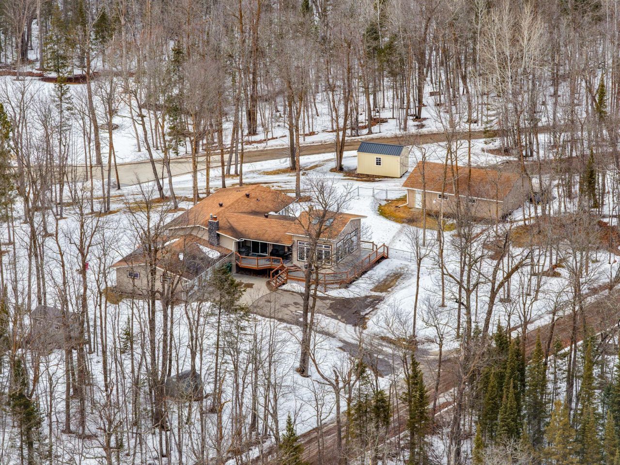 Spacious and beautifully maintained home with access to Lake Julia located on desirable Continental Court! Enjoy lake life without the waterfront taxes with your own dock and boat lift already in place on the lake.This impressive updated home offers 3 bedrooms and 2 bathrooms, with two bedrooms and a full bath conveniently located on the main level. One of the standout features is the massive sunroom with vaulted ceilings, providing a bright and inviting space to relax year-round. The sunroom opens to a fenced backyard area that connects to the oversized heated detached garage, offering excellent functionality and storage.Outdoor living is exceptional here with a wraparound deck that flows from the front entrance around the home and leads to the patio area?perfect for enjoying fresh air, entertaining guests, or simply taking in the peaceful setting.Inside, you'll find generous living spaces and abundant storage throughout the home. The spacious kitchen features ample cabinetry, while the large dining area provides plenty of room for gatherings. The open-concept upper level living room creates a comfortable atmosphere and offers beautiful views overlooking a back yard deck and Lake Julia.The lower level adds even more usable space with a third bedroom, a huge laundry room, and an oversized storage room that doubles perfectly as a workout area or hobby space. The cozy family room features a gas fireplace and a newly built-in bar, making it the ideal spot for entertaining or relaxing evenings at home.Additional highlights include attached garage, oversized heated detached garage, and two garden sheds?one of which is brand new?**providing plenty of space for tools, toys, and lake gear. Plus tons of updates to include flooring, electrical, and decking to name a few.If you've been waiting for a spacious and elegant home with lake access on beautiful Lake Julia, this property offers the perfect blend of comfort, recreation, and convenience located just a few minutes from Buena Vista ski area, a few minutes to shopping in Bemidji, close to schools and many fishing and recreational lakes. This home is nestled under the mature trees in natures paradise!