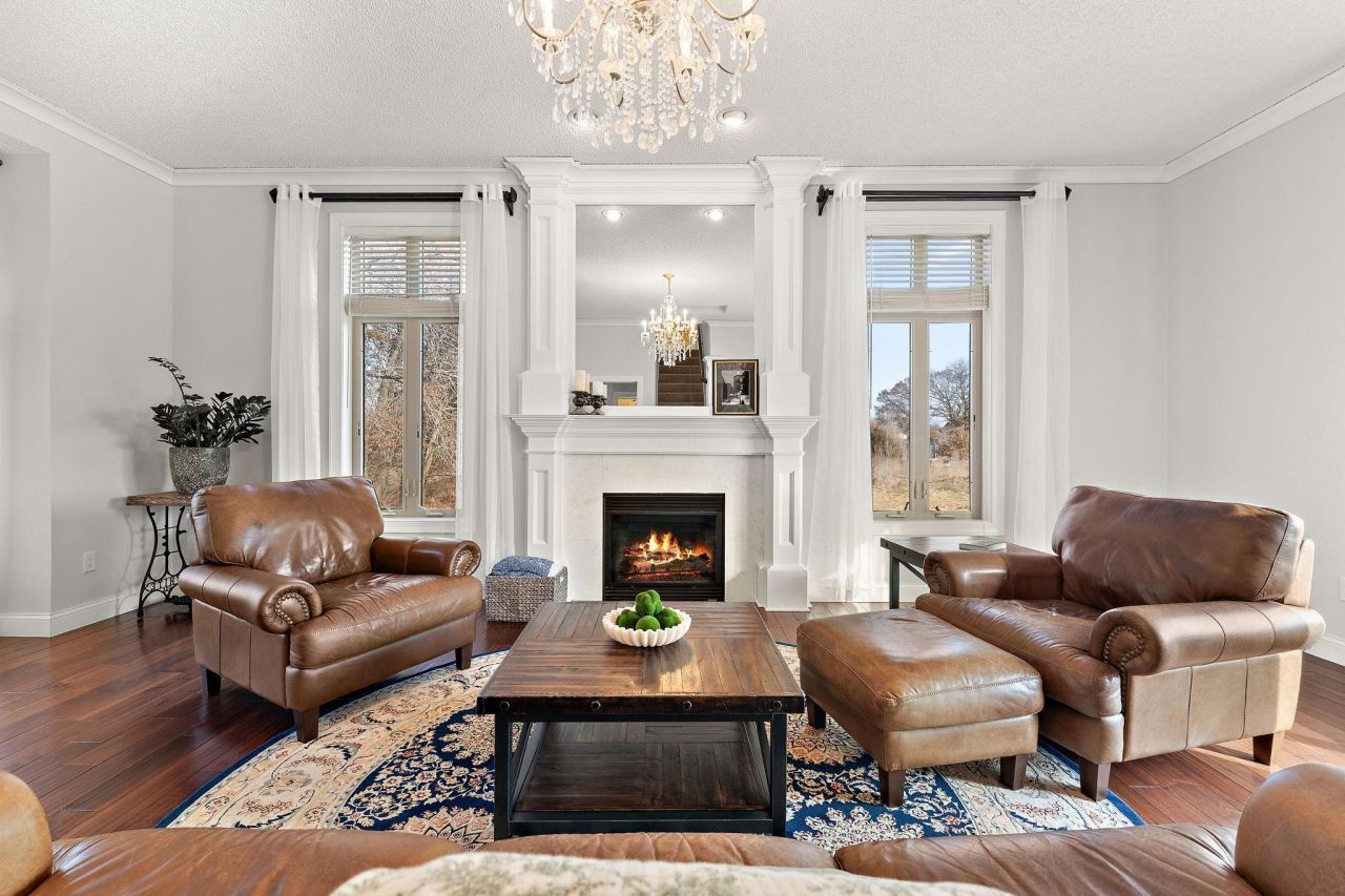 *** Multiple Offers Received - Offers Due Sunday, March 15th at 9:00pm.** Welcome to this exceptional modified two-story set on 2 private acres in a quiet neighborhood, offering timeless design and thoughtful upgrades throughout. Rich 3/4 solid walnut hardwood floors, intricate millwork, crown molding, and crystal chandeliers create an elegant first impression.The spacious kitchen is anchored by a solid walnut island and features quartz countertops, marble backsplash, KitchenAid Architect Series appliances, and abundant cabinetry. Designed for both everyday living and entertaining, the open layout flows seamlessly into the dining and living areas with 10' ceilings and beautiful architectural detail.Luxury continues in the marble and travertine bathrooms, complete with in-floor heat in both the primary and lower-level baths. Additional comfort features include an Aprilaire air purifier, whole-house humidifier, Breath Clean ultraviolet air purification system, reverse osmosis filtration, water softener, irrigation system, dimming LED lighting, and 5-channel surround sound.Solid core wood interior doors, maple handrails with wrought iron railings, LP SmartSide siding, maintenance-free porch decking, and a newer rear deck further elevate the home's quality and craftsmanship.Set on a beautifully maintained 2-acre lot with a spacious backyard, this property offers privacy, comfort, and refined living in one stunning package.