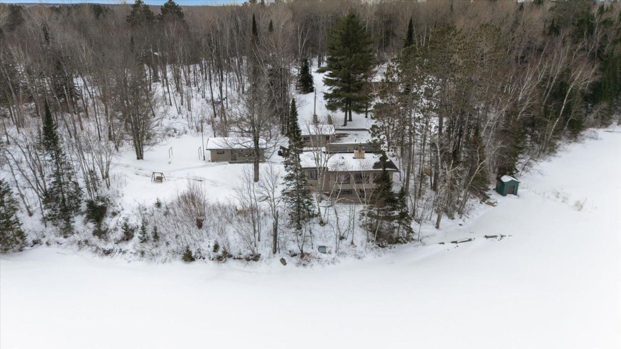 Set on Big Sturgeon in the Side Lake Chain, this lake property offers the kind of space and privacy many buyers travel north to find. With approximately 7.8 acres and 776 feet of shoreline, plus public land bordering portions of the parcel, the setting provides a true up-north feel with room to spread out. The home sits close to the water, allowing lake views from the main living areas. The main level includes three bedrooms, a bath, and an open kitchen, dining, and living space, along with an enclosed three-season porch overlooking the lake. The walkout lower level adds a recreation area, updated bath, wood-burning fireplace, and flexible guest space. Outside you'll find mature pines, a sandy swimming area, private driveway, a bunkhouse with sauna, and multiple outbuildings including a heated 28??32 garage ? everything needed for weekends at the lake or extended stays.