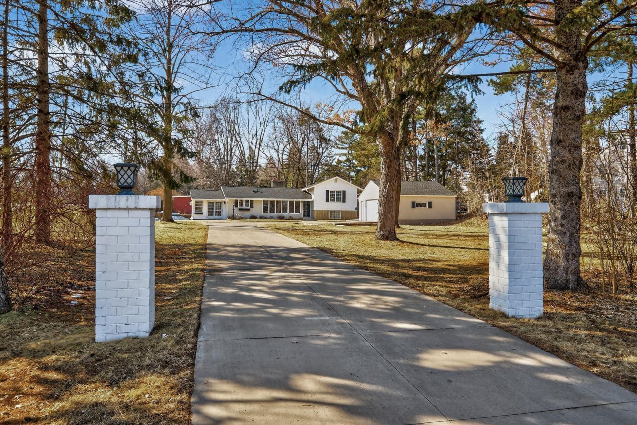 Craving privacy, space, and a peaceful setting?without giving up convenience to St. Paul? This inviting home is tucked back from Century Ave and beautifully screened by mature trees, while the longer driveway sets the tone for standout curb appeal. Set on just under an acre, the backyard is open and flat with apple trees and plenty of room for gardening, relaxing, and hosting the people you love.Inside, you'll love the cabin-inspired charm and vintage character: real hardwood floors, a cozy wood-burning fireplace, and a bright front wall lined with Pella windows that fills the home with natural light. Designed with timeless Northwoods character, the wood-wrapped interior creates an easy, natural connection to the setting outside. Rich textures, warm wood tones, and exposed beams pair with the statement fireplace to give the home a cozy, lodge-like feel?inviting, authentic, and full of craftsmanship. The four-season porch is heated with an overhead heated fan and features Pella windows. It's the perfect spot for morning coffee, reading, or hosting friends year-round. Energy efficiency is enhanced with the added spray foam insulation in the attic.Upstairs offers two bedrooms with ample closet space and an updated, full bath featuring gorgeous tile and a heated jetted tub. The lower level includes an additional bedroom currently used as a flex room, plus access to a large insulated crawl space for extra storage. Bonus: Workshop space and an additional attached garage around back?ideal for lawn equipment, hobbies, or toy storage. A rare blend of privacy, character, and convenience?schedule your showing and come see how it lives.